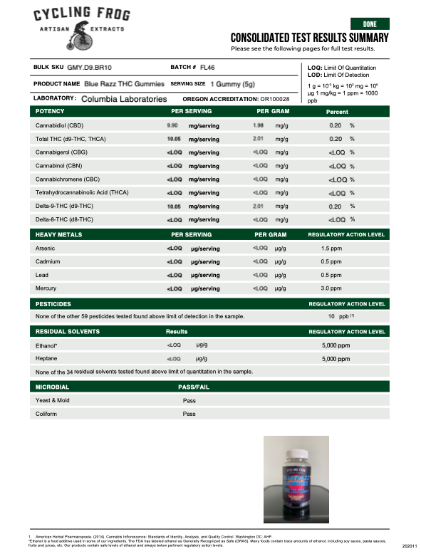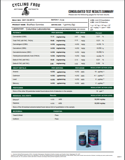 Our BlueRazz 1:1 THC + CBD gummies provide the perfect full-spectrum balance of THC + CBD. With 10mg of both THC and CBD, and lots of other beneficial cannabinoids packed into each delicious gummy, our 1:1 THC + CBD gummies are designed so you can find your own perfect balance.