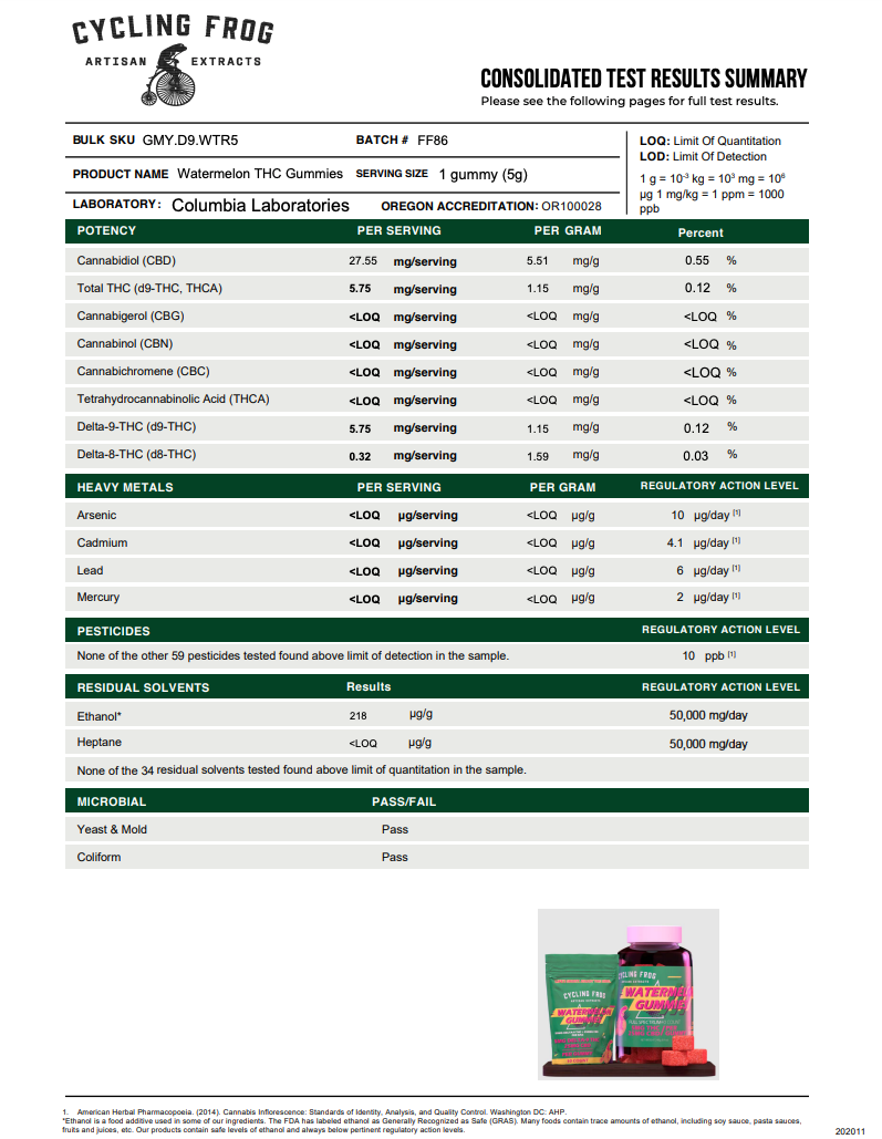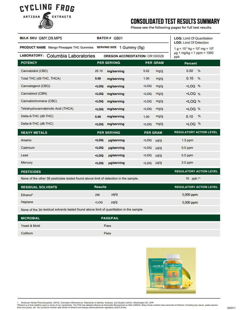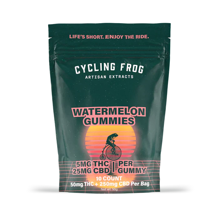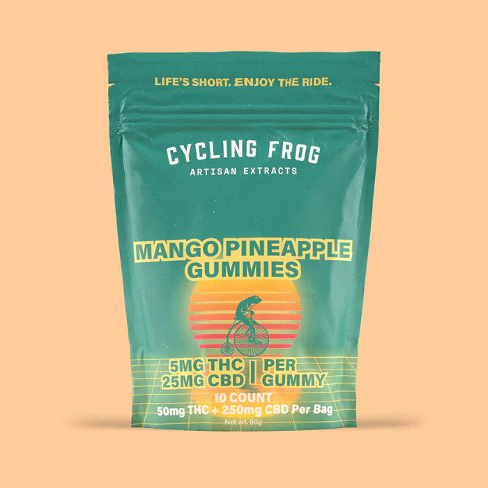 The Cycling Frog THC + CBD gummies are a mouthwatering, full-spectrum treat. With 5mg THC, 25mg CBD, and lots of other beneficial cannabinoids packed into each bite, our full-spectrum gummies are designed so YOU can do YOU!