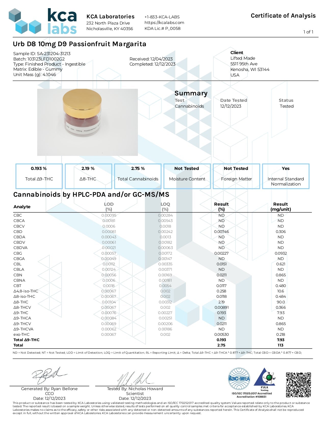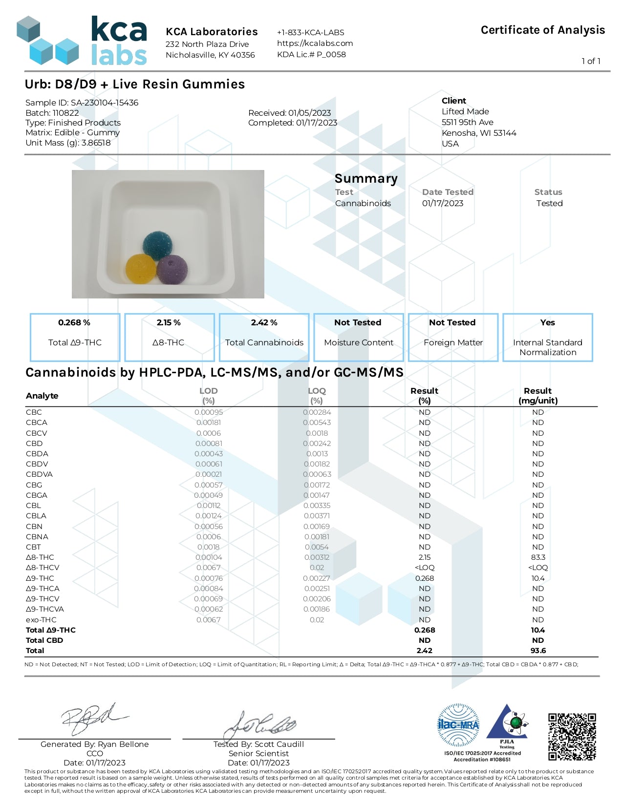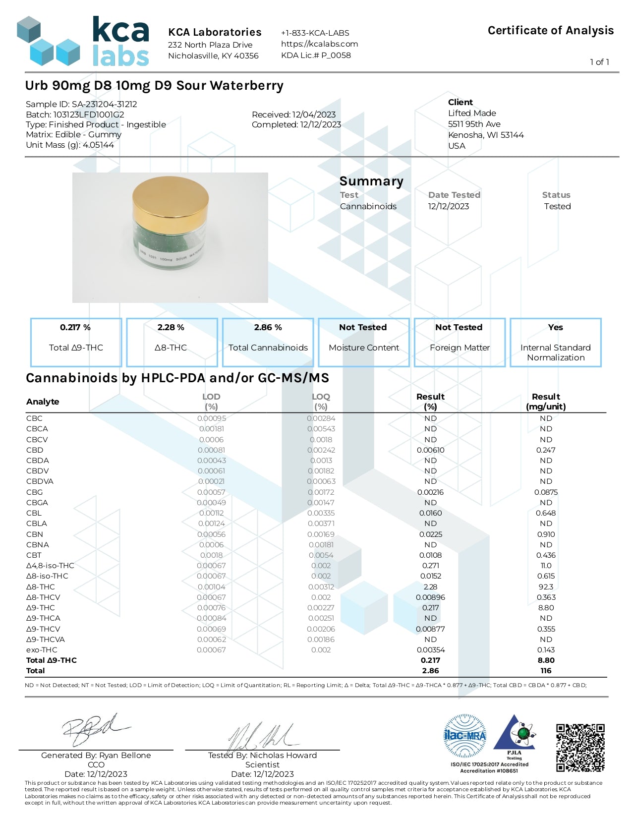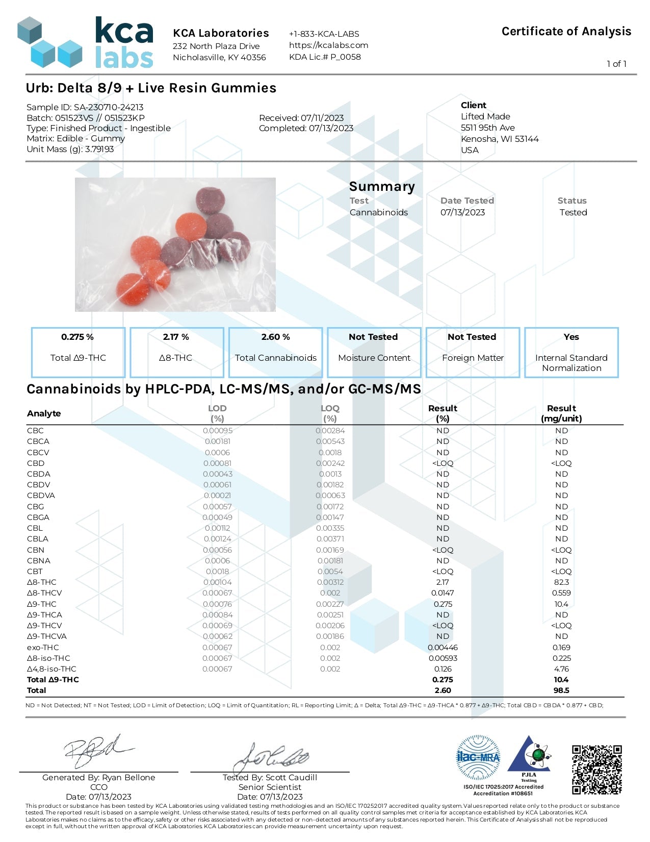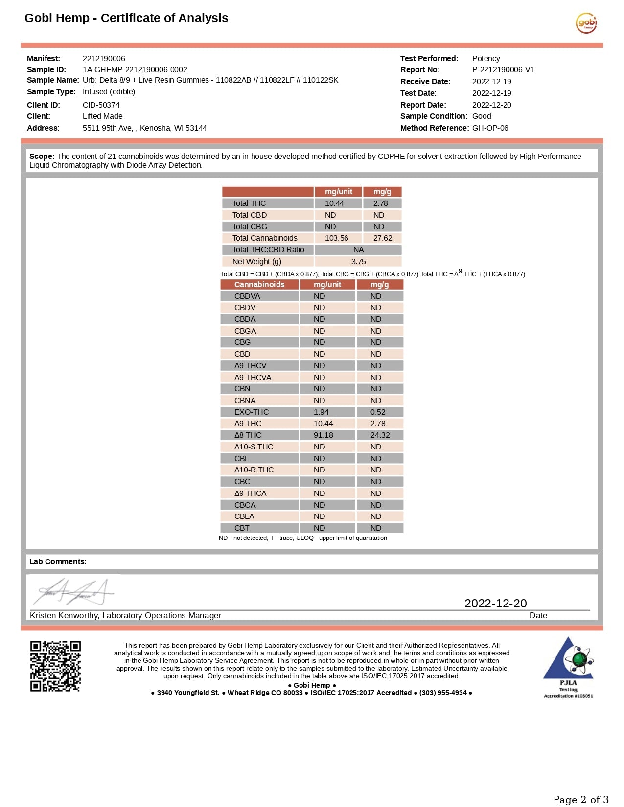 Urb’s most potent gummies to date, made with freshly frozen hydrocarbon extracted live resin concentrate, Delta 8 THC and Delta 9 THC creating a balanced body and head effect. Intended only for users with high tolerance. Pick from six mouth watering connoisseur flavors; Blue Watermelon, Tropical Breeze, Sour Waterberry, Ruby Grapefruit, Passionfruit, Margarita and Island Peach.These gummies are made with the highest quality organic ingredients, natural flavors, natural colors and are Vegan, Gluten free and Non-GMO.