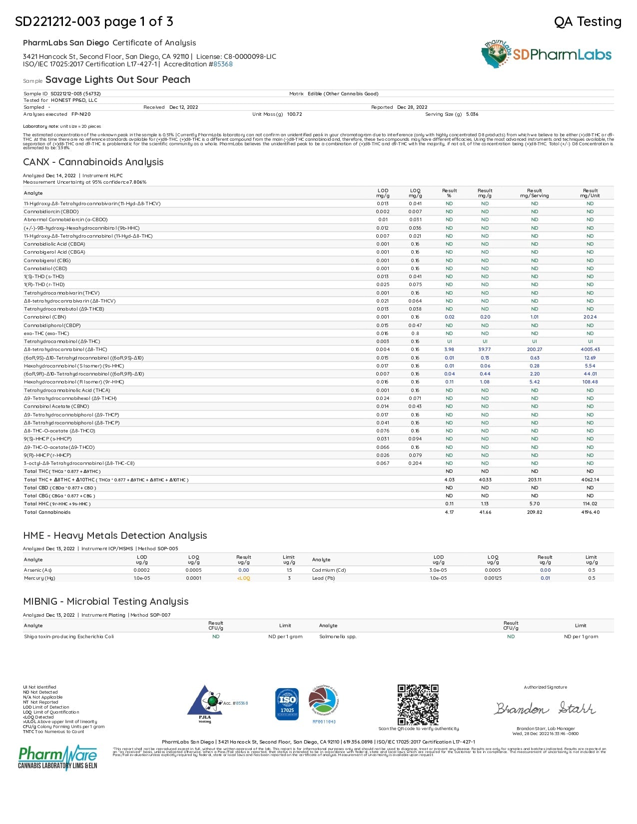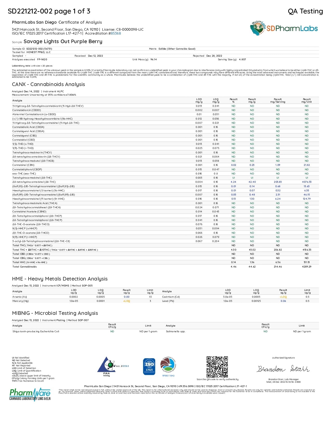 Corn Syrup, Sugar, Purified Water, Pectin, Delta-10 THC (1400mg/container, 70mg/serving), THC-JD (100mg/container, 5mg/serving), Delta-9 THC (100mg/container, 5mg/serving), THCh (100mg/container, 5mg/serving), THCP (50mg/container, 2.5mg/serving), Natural & Artificial Flavoring, Citric Acid, Sodium Citrate, Natural & Artificial Coloring.
