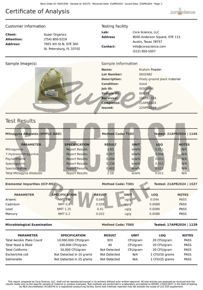 Feel good with Super Speciosa's best-selling kratom strain "Green Maeng Da Kratom Powder!" Perfect for beginners and seasoned enthusiasts alike, it offers focus and mood-boosting qualities without the crash of coffee or energy drinks.