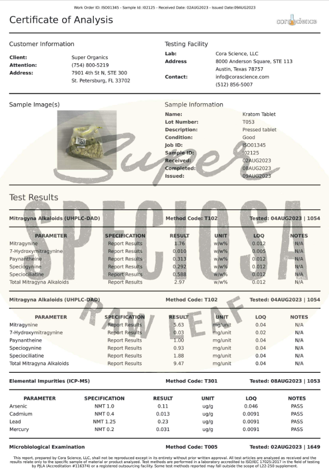 Super Speciosa prides itself on delivering high-quality kratom products. Each batch of Green Maeng Da Kratom Tablets undergoes rigorous third-party lab testing to ensure purity and potency. Manufactured in the USA, these tablets are produced under strict GMP standards, ensuring you receive a safe and effective product.