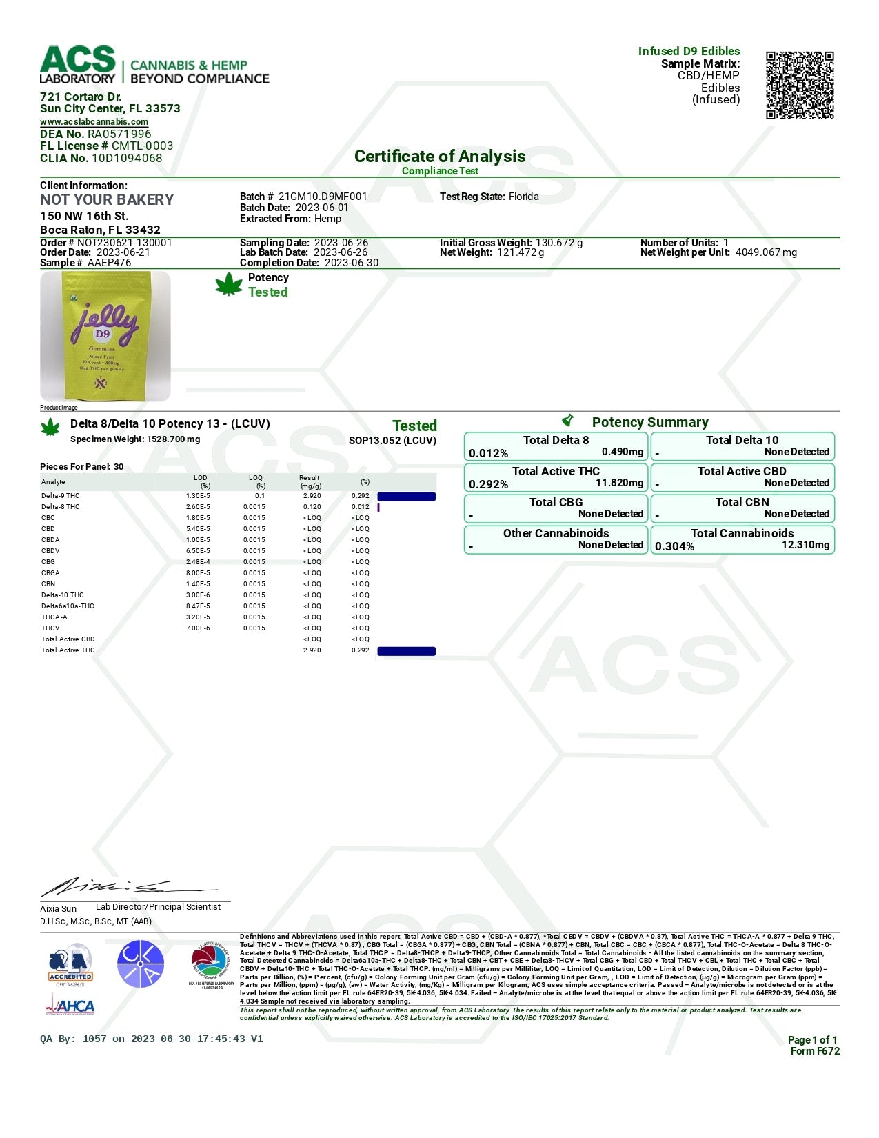 Not Your Bakery’s Jelly Delta 9 THC Gummies contain 10mg of THC each, with 5 gummies in the bag.