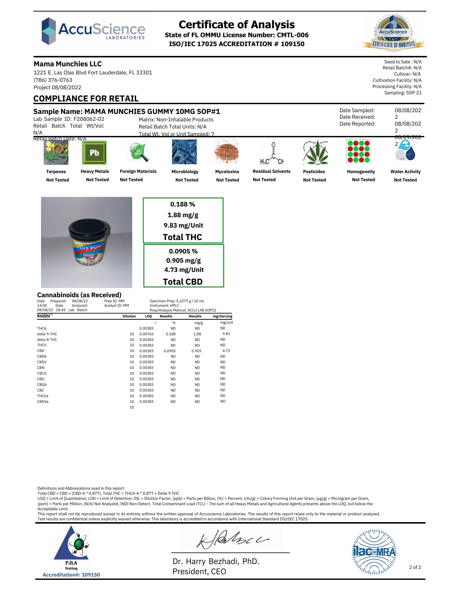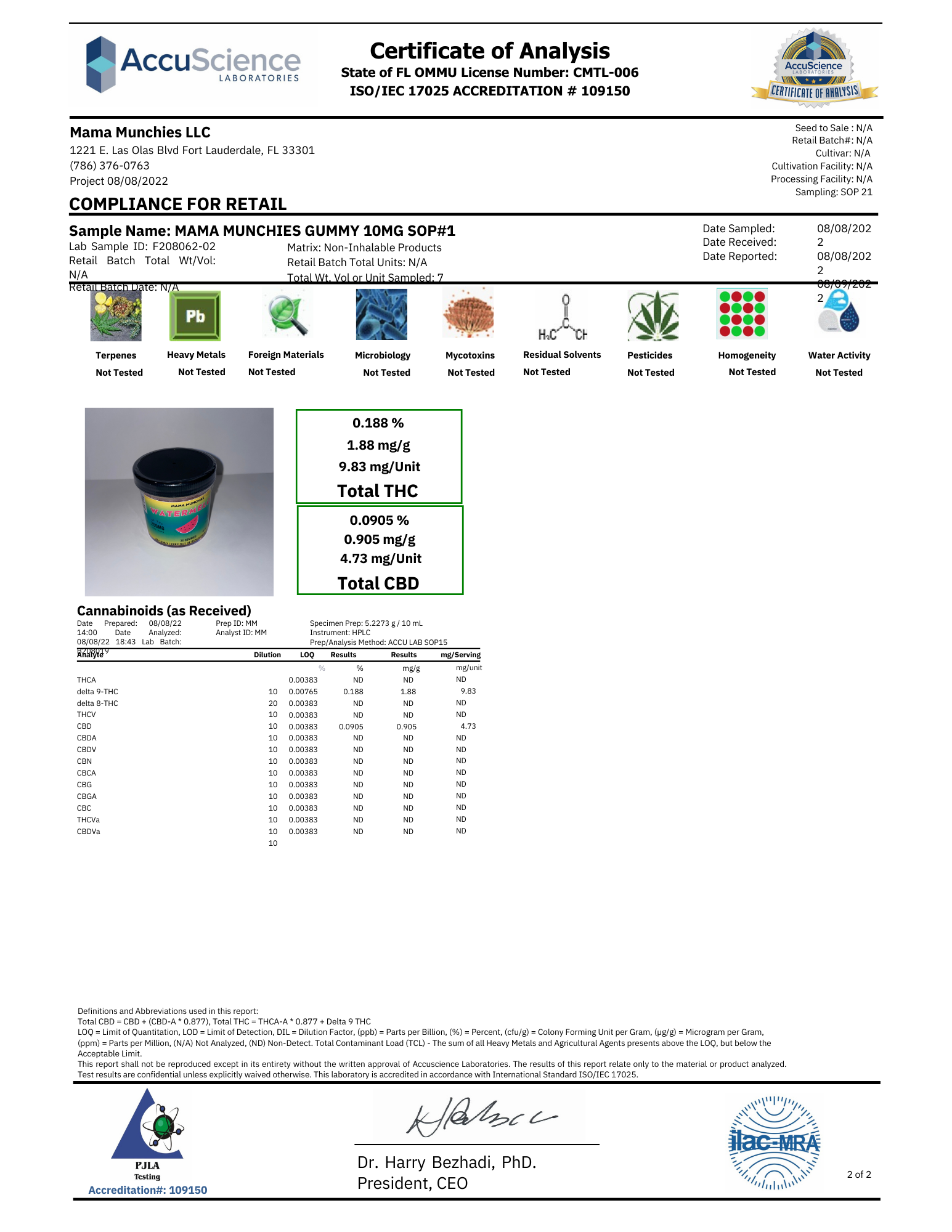 Per Gummy - 10MG D9 THC + 5MG CBD Per Bag - 100MG D9 THC + 50MG CBD