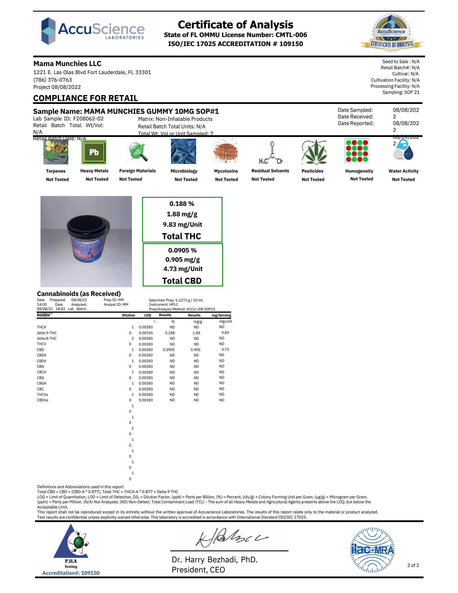 Light Corn Syrup, Cane Sugar, Pectin, Citric Acid, Vegetable and Fruit Powders & Oils (flavor), Sodium Citrate, Coconut Oil, Hemp Extract.