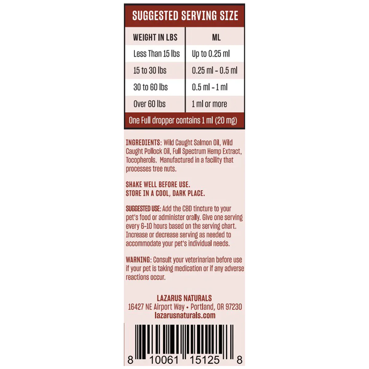 Add the CBD tincture to your pet's food or administer orally. Give one serving every 6-10 hours based on the serving chart. Increase or decrease serving as needed to accommodate your pet's individual CBD dosage needs. Shake the CBD pet tincture well before use.
