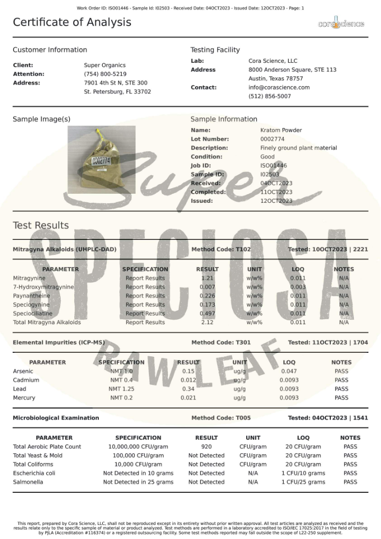 Mitragyna speciosa leaf powder. No other fillers or additives. Just pure leaf!