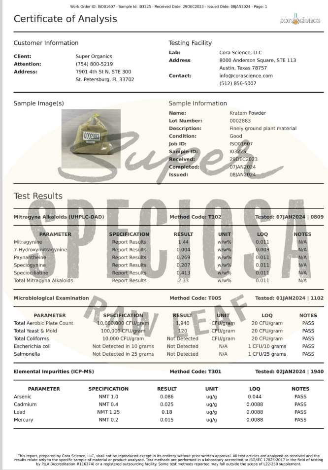 Mitragyna speciosa leaf powder. No other fillers or additives. Just pure leaf!