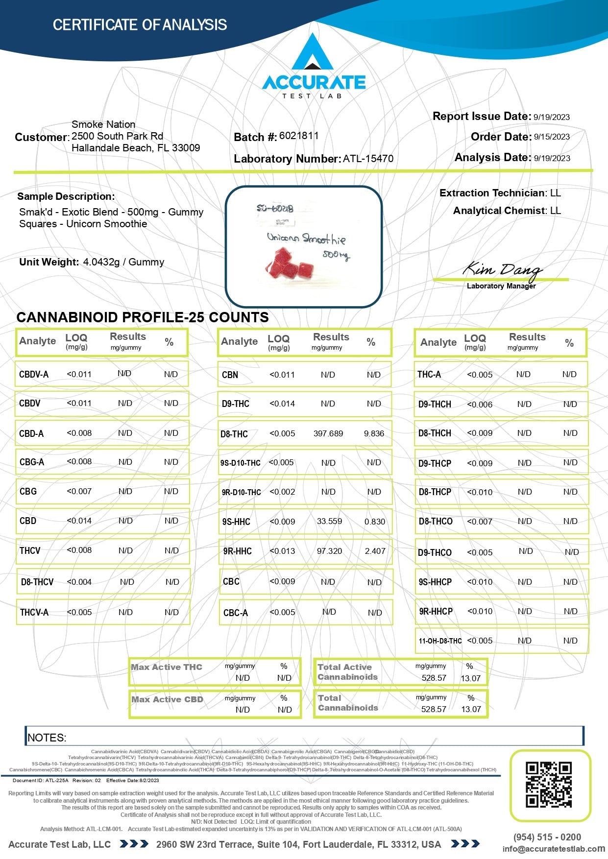 Smak'd THC Gummies, including our popular edible THC gummies, are made with a special blend of Delta 8 THC, HHC, and CBN extracts, creating a magical recipe for a calm and happy experience, promoting relaxation for both mind and body. Each bag contains 20 gummies and each gummy contains 500MG, totaling 10000 MG THC gummies per bag.
