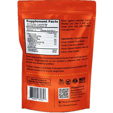 What’s Inside Our Naturally Flavored Best CBG Gummies? All Natural Orange flavor 25mg CBD + 25mg CBG per Gummy 15 CBD:CBG gummies per bottle These CBG gummies are part of the zero THC gummies product line as tested by 3rd party lab reports We are all seeking something in life and we designed our Perfect Dose line of products to help you find your perfect dose with blended cannabinoids. In addition these gummies include a perforated line to make it easy to consume a half or a whole gummy.