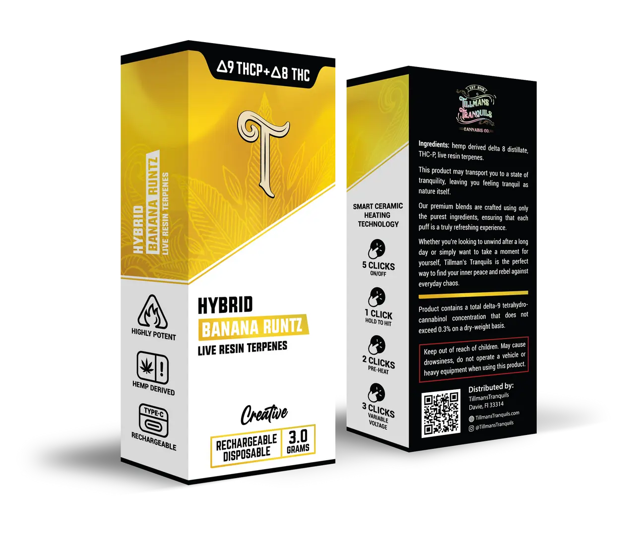 A hybrid strain, Banana Runtz, mixed with THCp and Delta 8 thc, may create an uplifted affect leaving you feeling as tranquil as nature itself.