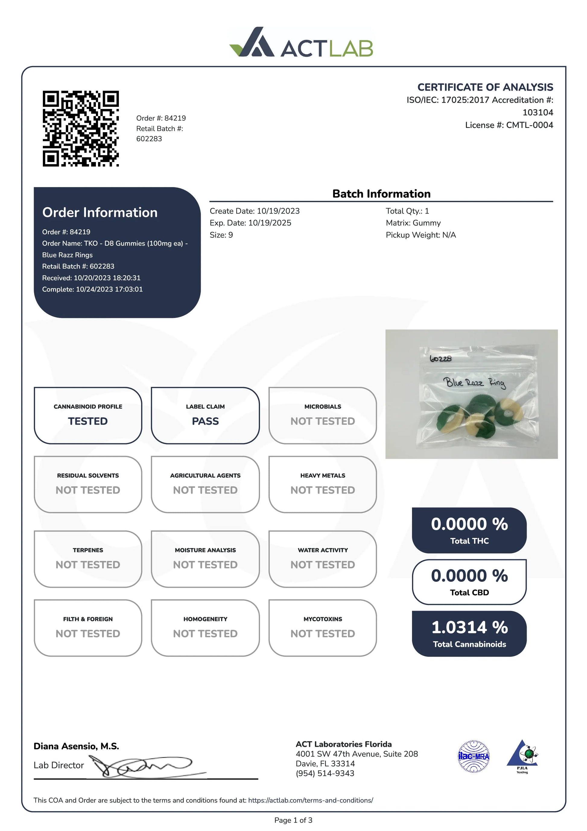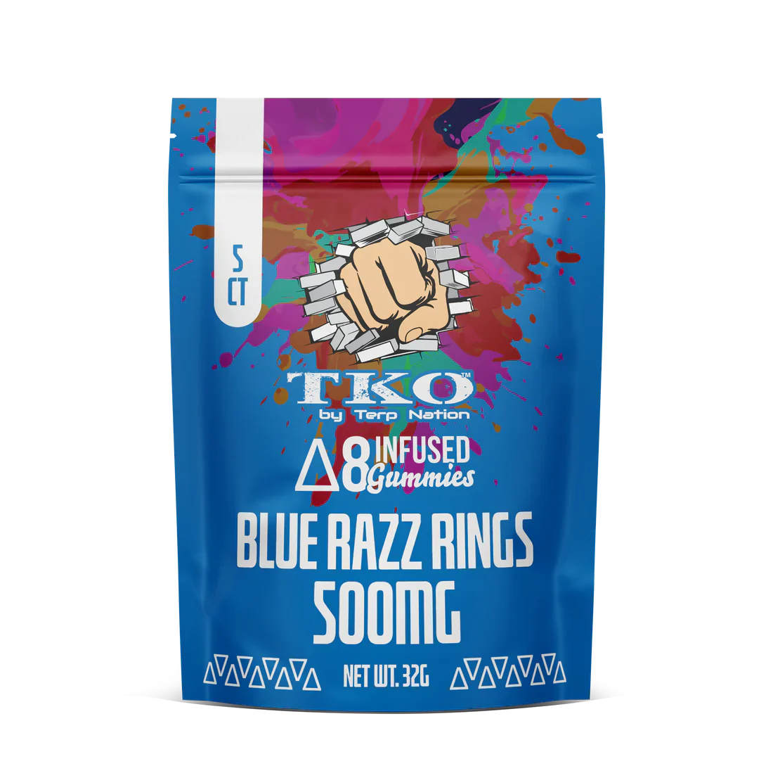 TKO D-8 Infused Gummies 500mg- Blue Razz Rings
