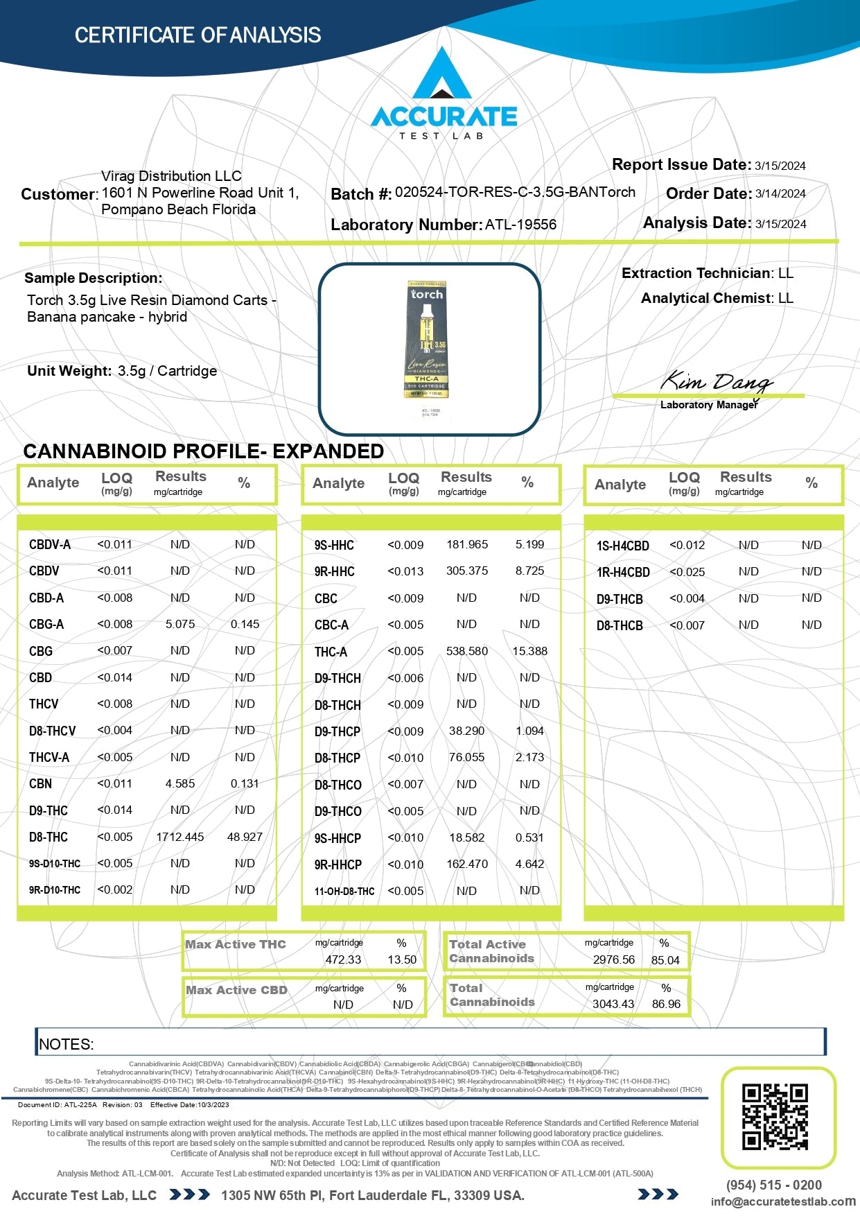 Indulge in cannabis excellence with the Torch THC-A Cartridge. Packed with 3.5 grams of premium Live Resin Diamonds in a convenient 510 thread compatible cartridge, this product delivers an unparalleled experience for true enthusiasts.
